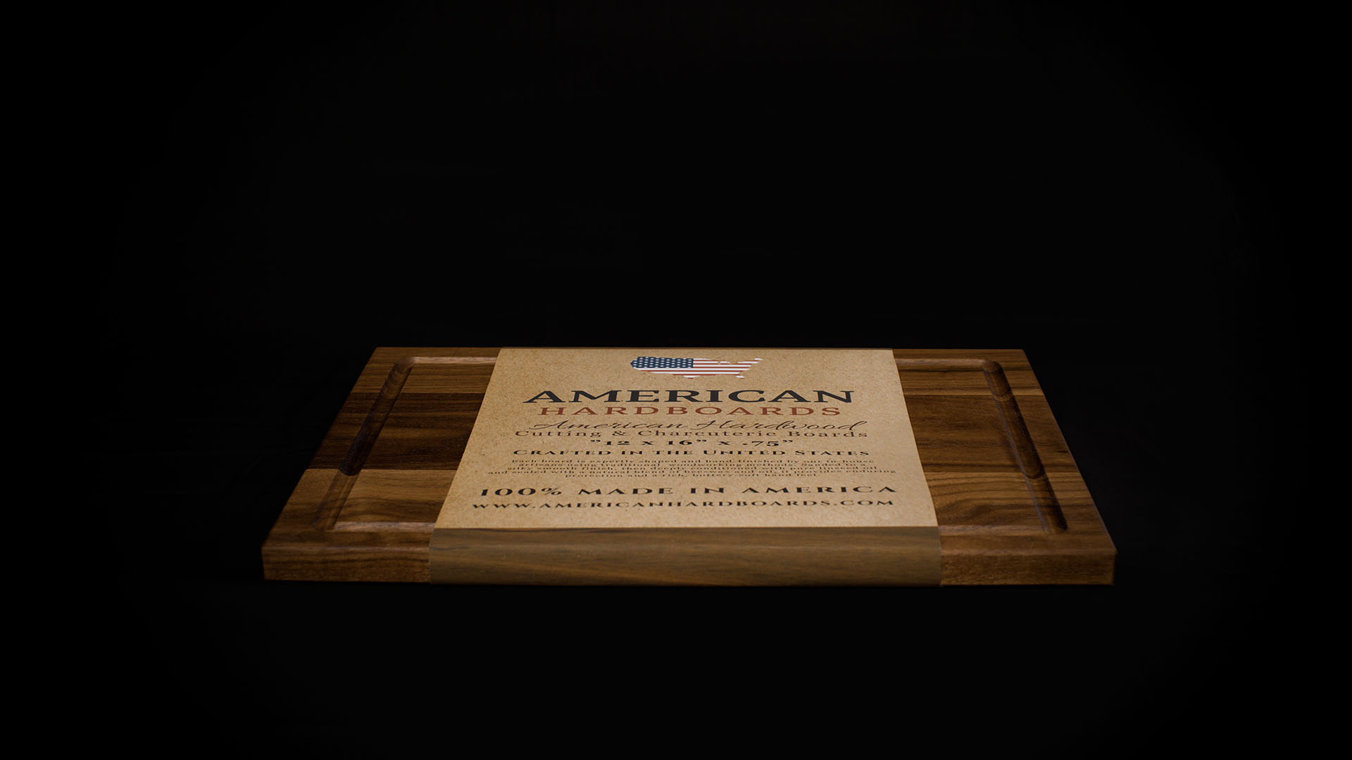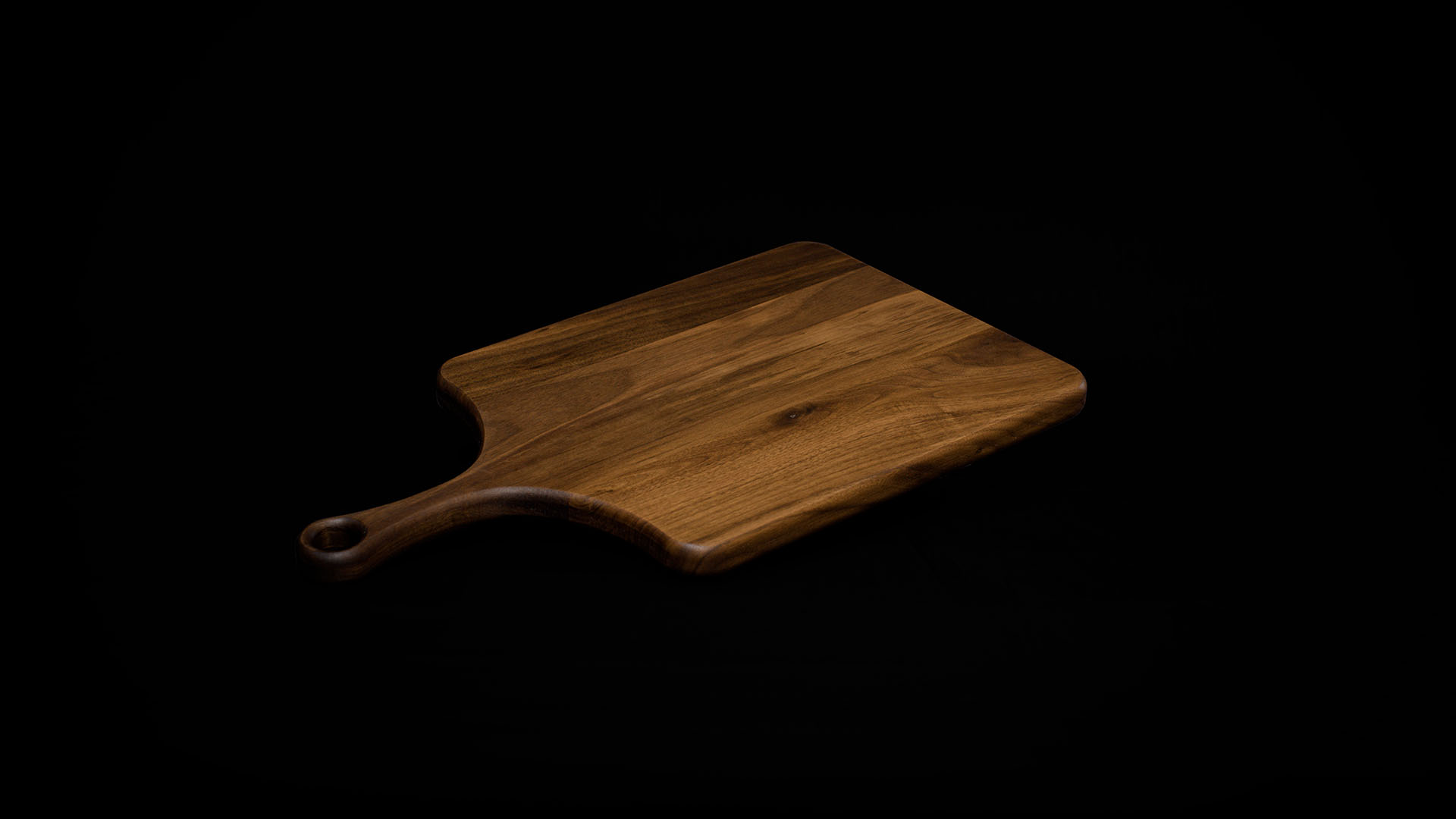 A handcrafted American black walnut board with a clean straight-paddle profile, designed for charcuterie, serving, presentation, and everyday versatility.