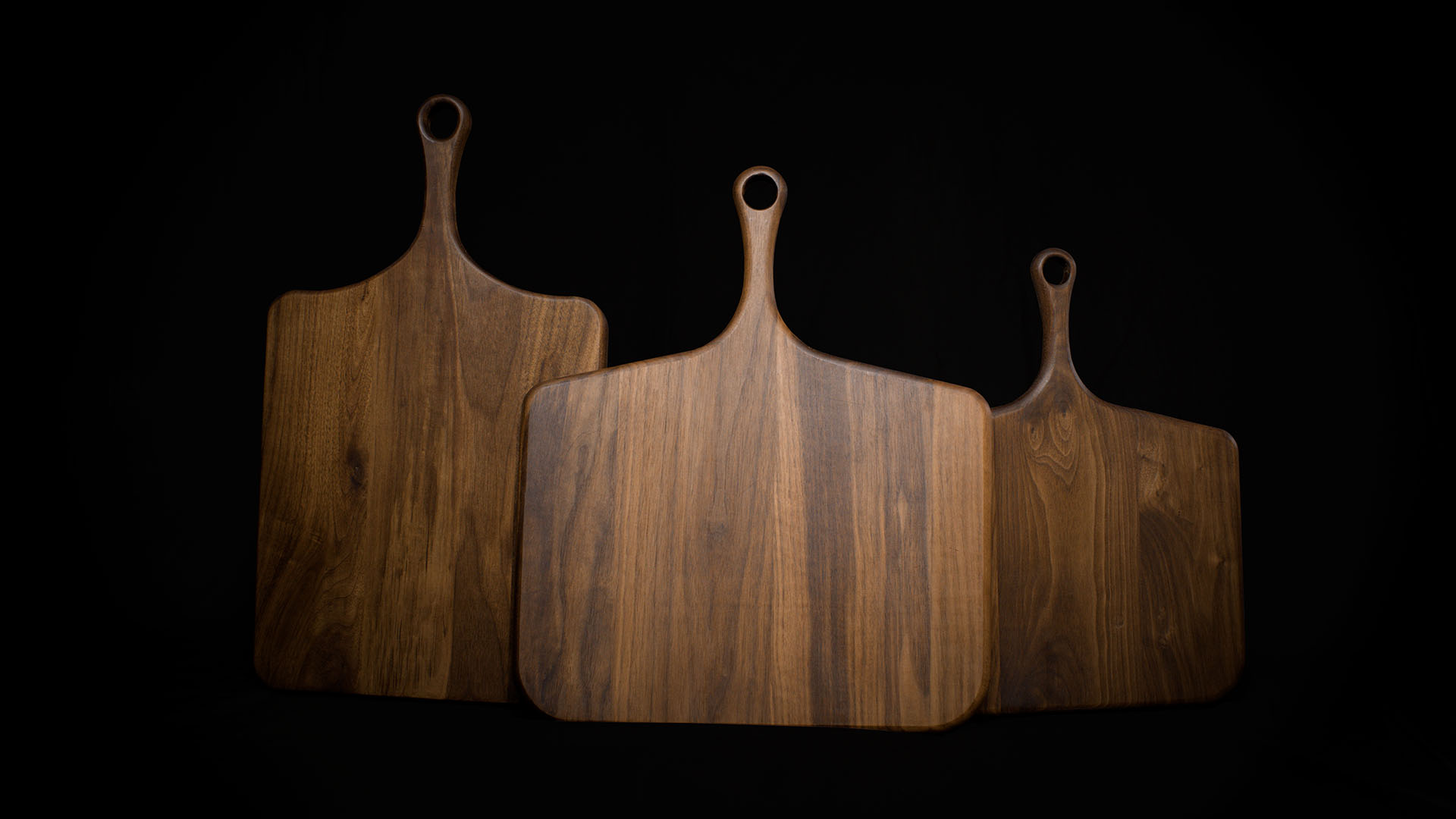 The complete Heritage™ Collection includes the Regular Heritage™ Paddle Board, Large Heritage™ Paddle Board, and The Foundry™ Board—a beautifully handcrafted American black walnut hardwood trio designed for charcuterie, serving, presentation, and light prep.