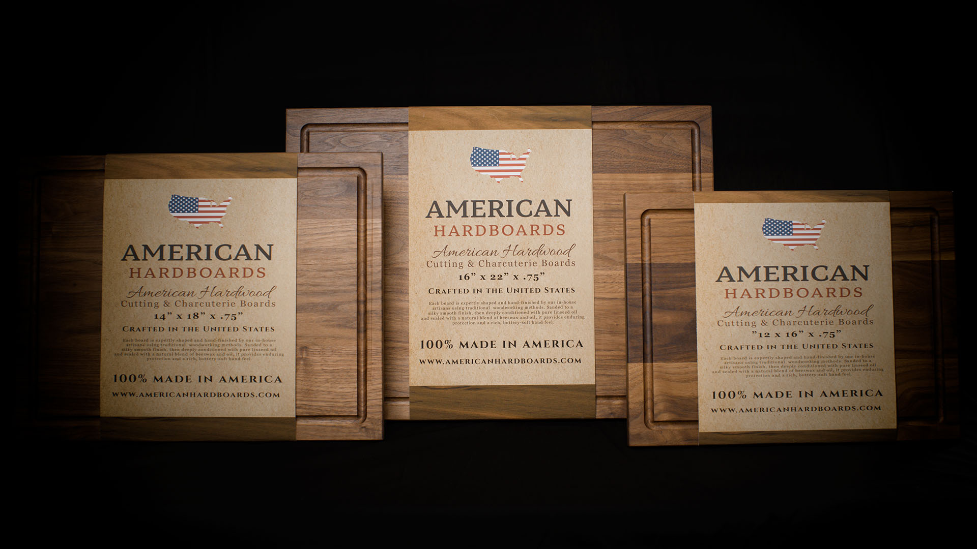 The Heritage™ Collection – 3-Piece American Hardwood Charcuterie Board Set