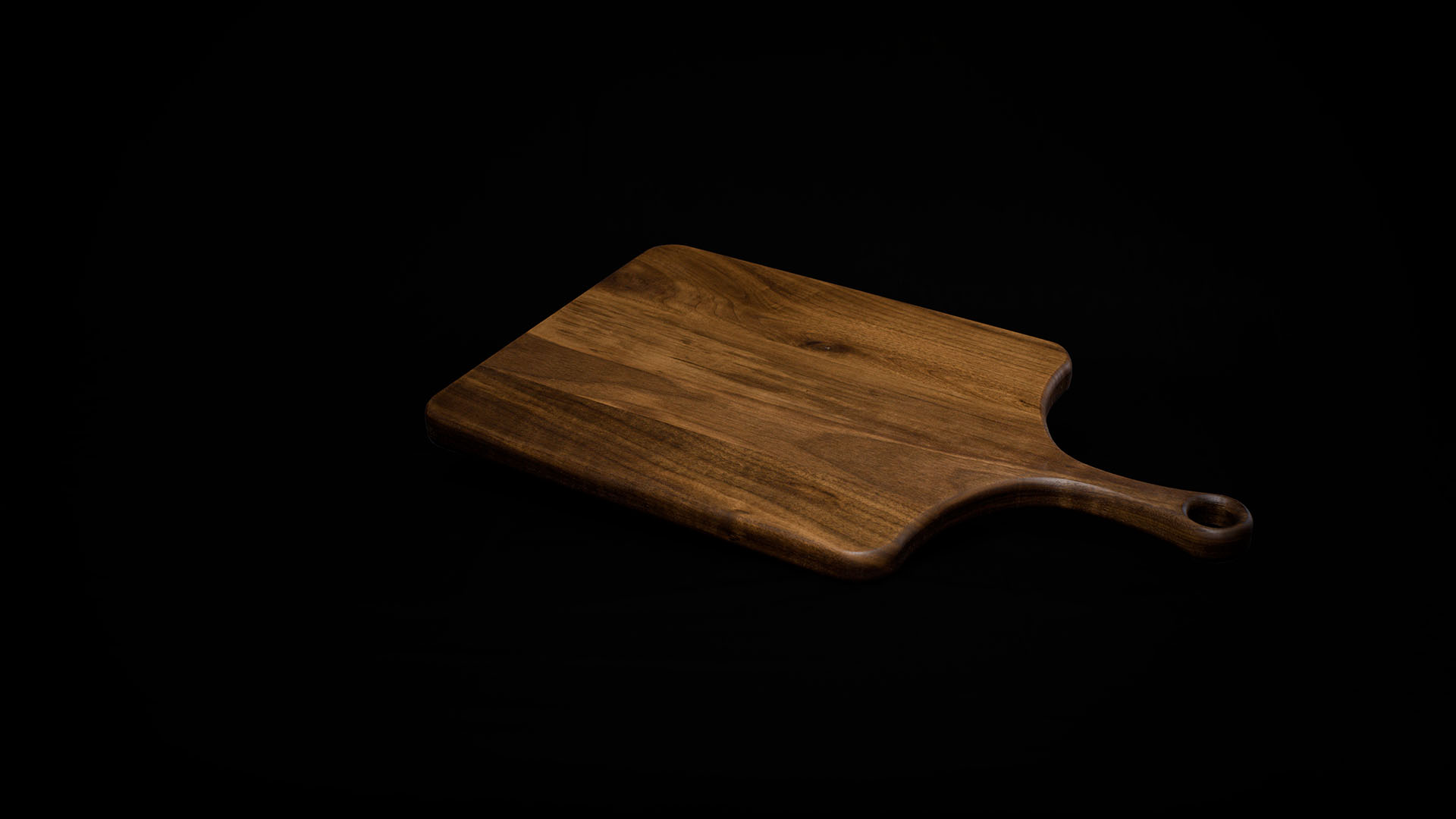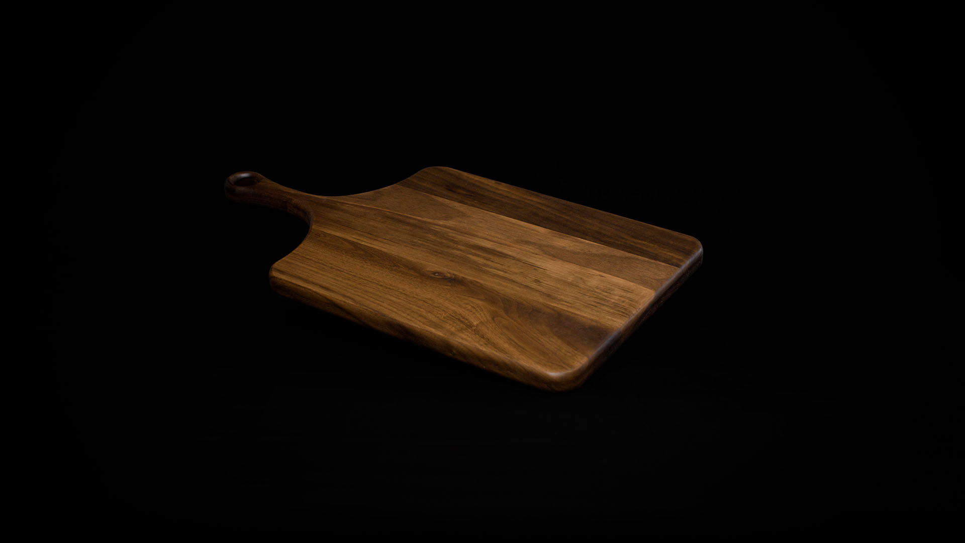 A handcrafted American black walnut board with a clean straight-paddle profile, designed for charcuterie, serving, presentation, and everyday versatility.