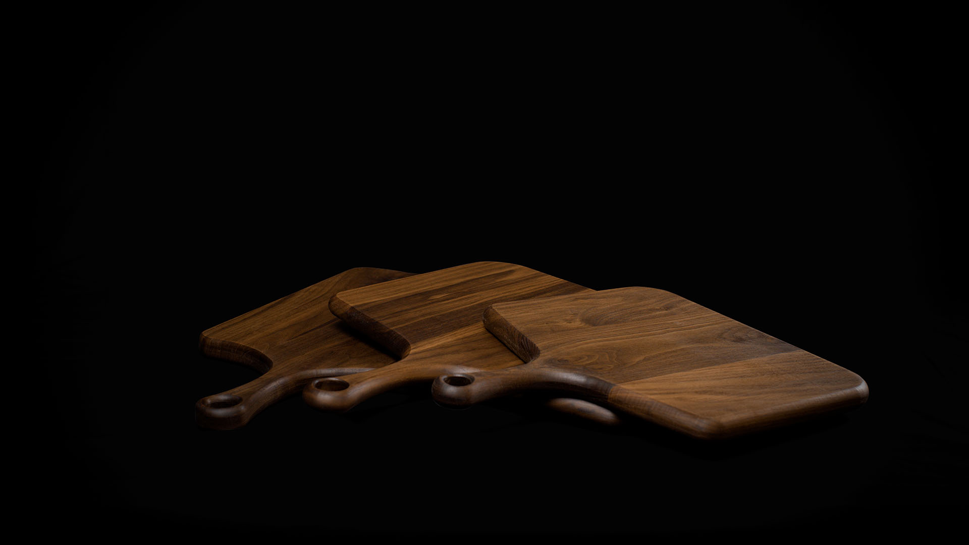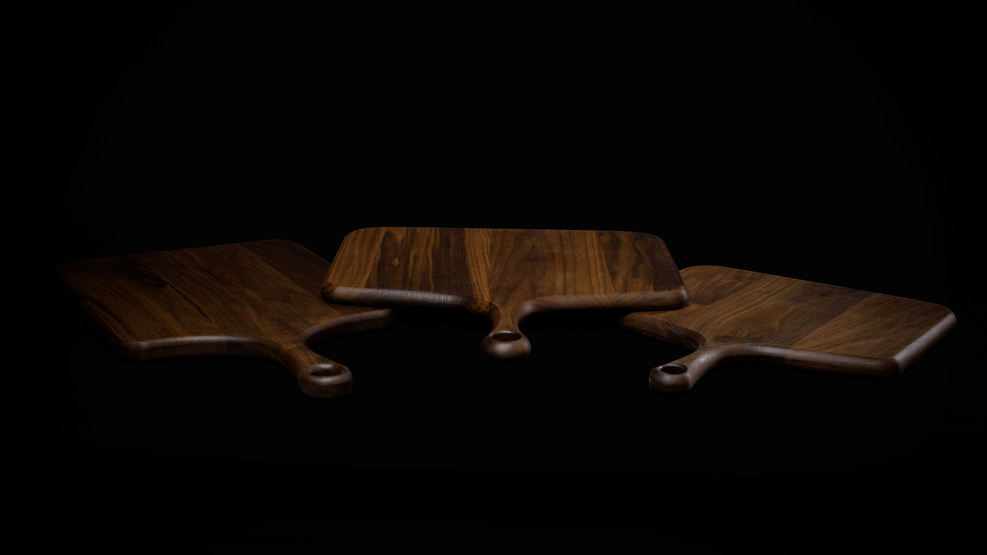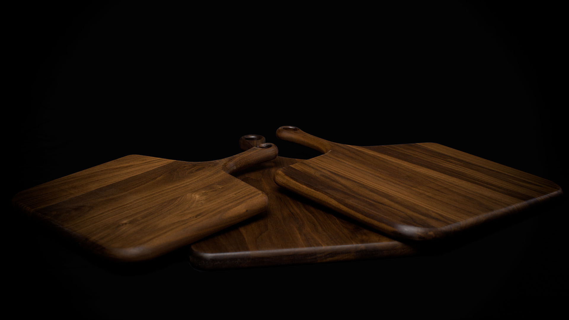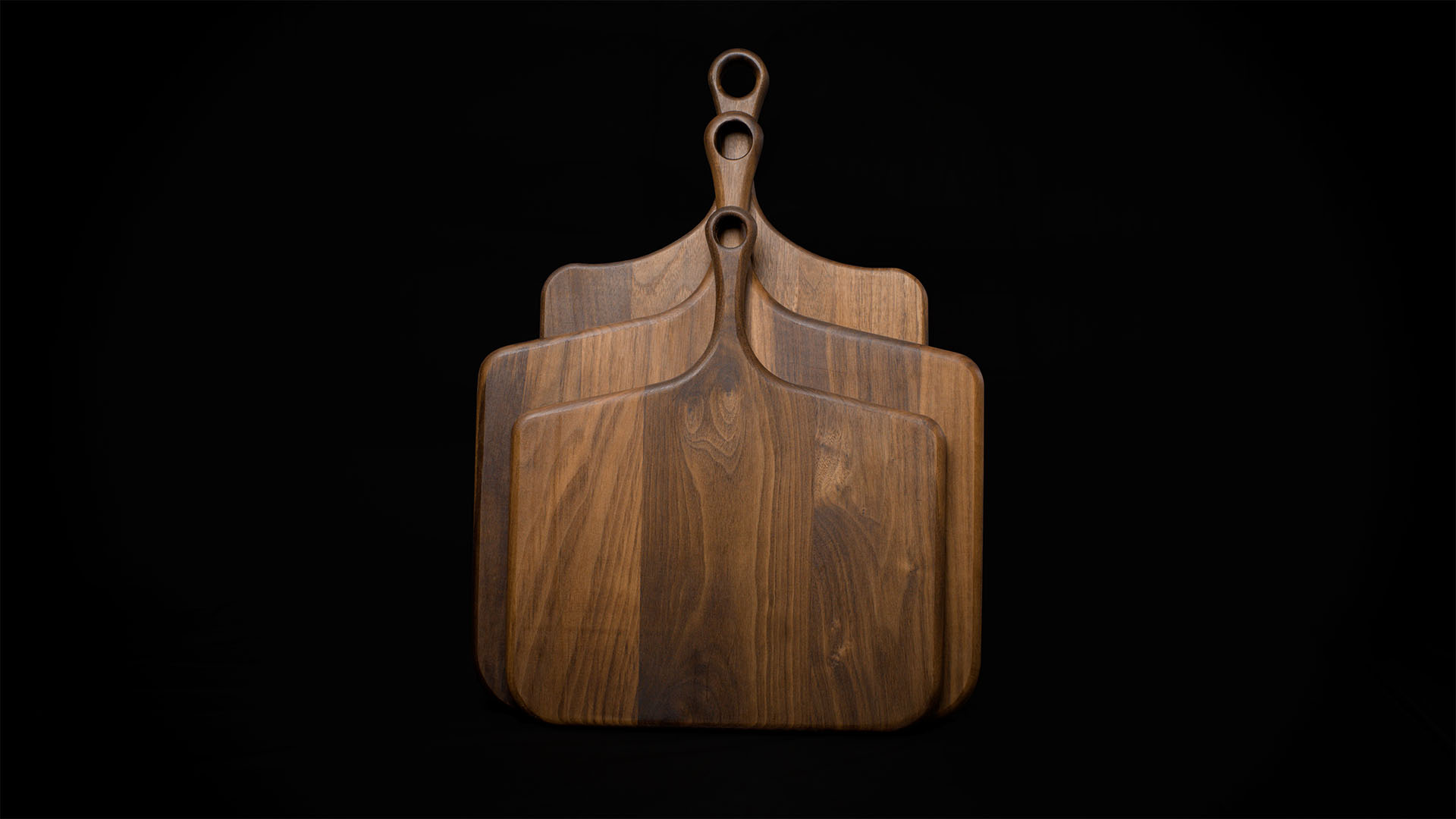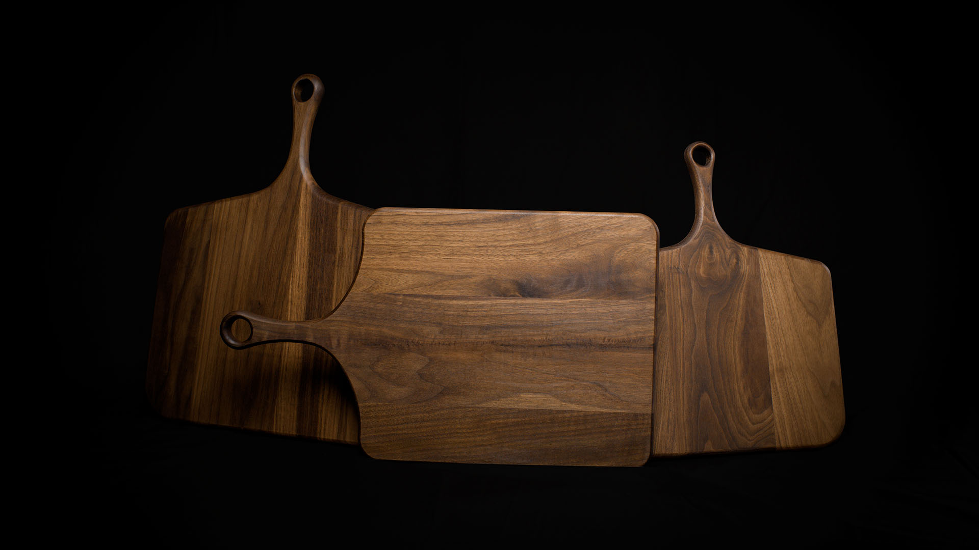 The complete Heritage™ Collection includes the Regular Heritage™ Paddle Board, Large Heritage™ Paddle Board, and The Foundry™ Board—a beautifully handcrafted American black walnut hardwood trio designed for charcuterie, serving, presentation, and light prep.